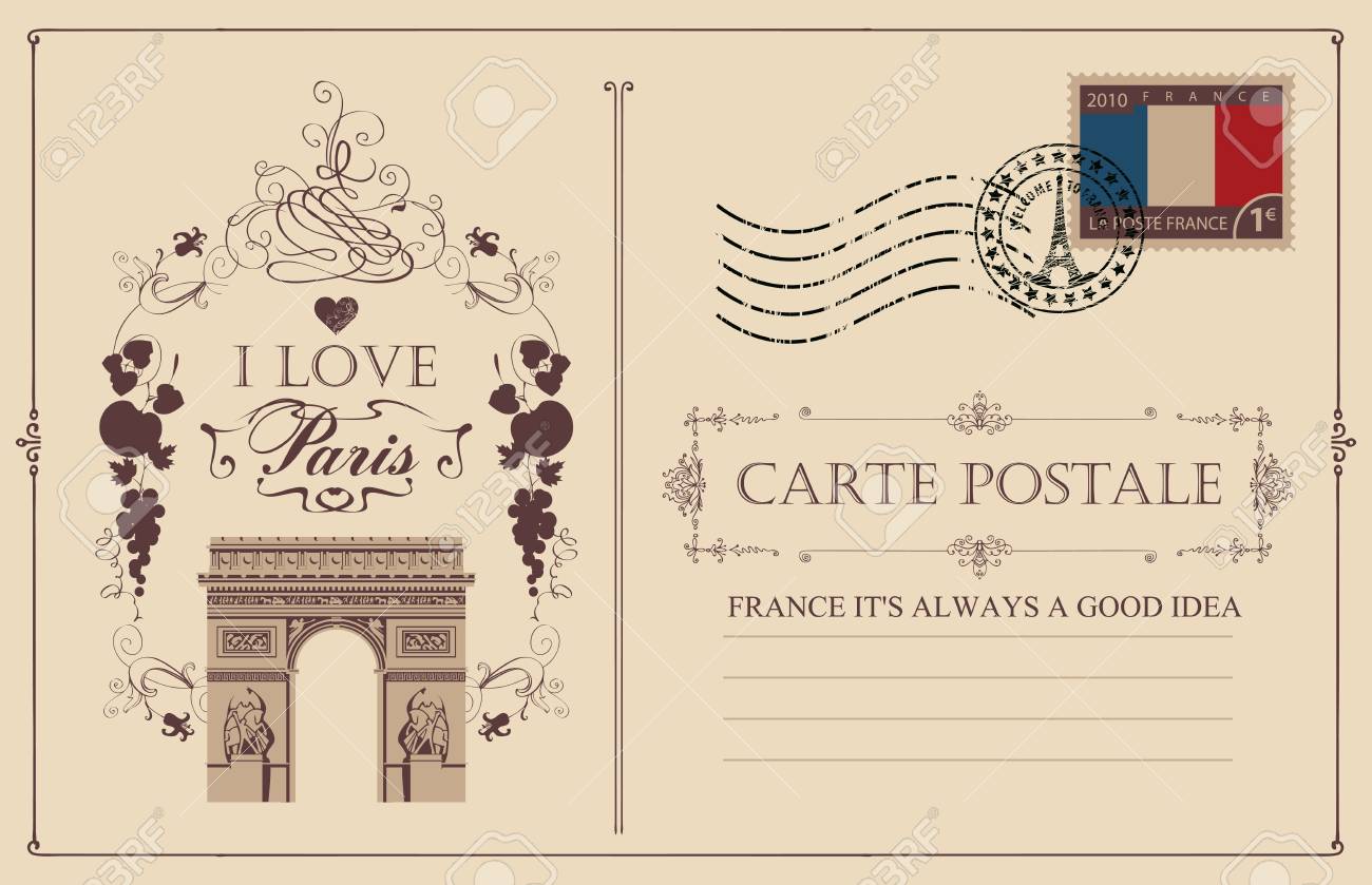 Retro Postcard With Famous Triumphal Arch In Paris France Vector